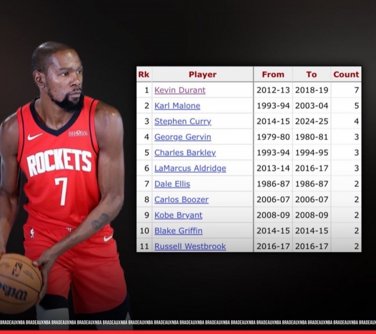 杜兰特在休斯敦对火箭的季后赛中30分以上得分7次创历史新高_nba直播免费观看直播在线