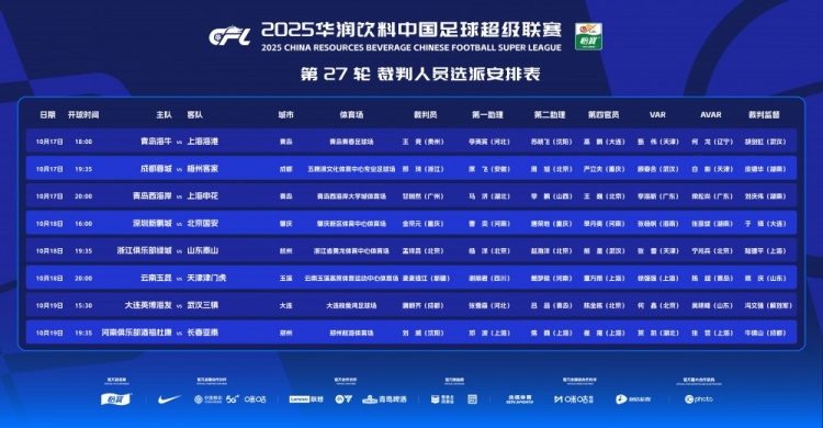 另外,甘树然与VAR李海新将在青岛西海岸与上海申花的对决中站好最后一班岗。看看这两个名字,感觉他们的水平就像这场比赛的气氛一样,让人捉摸不定。不过,不管怎么说,甘树然总是给人一种“轻松”的感觉。